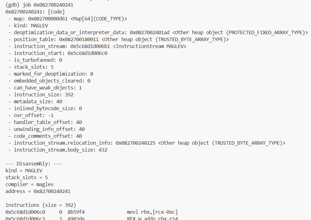 同理可得,指向通过MAGLEV编译生成的code的指针的地址为code_addr+0x14